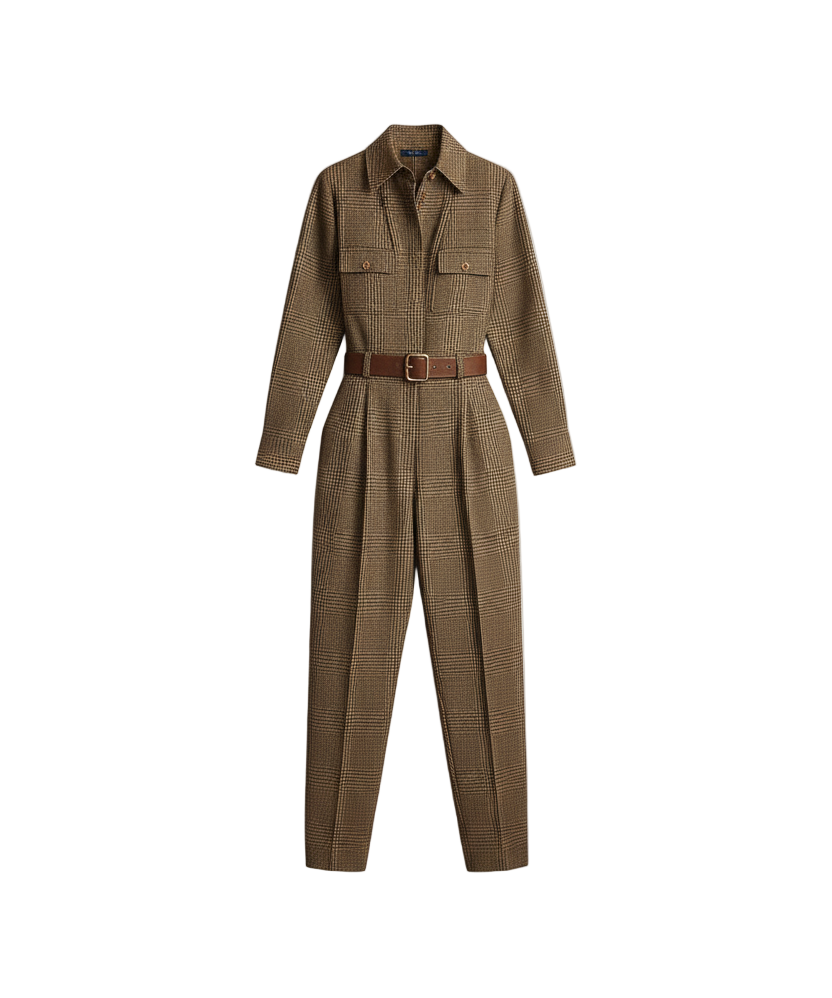 Ailina™ | Ruskea, tyylikäs Tweed-rakenteinen Ruudullinen Yleisöhaalaripuku