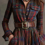 Emanuela™ | Tyylikäs ruutumekko vyöllä