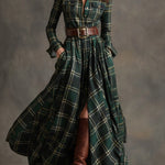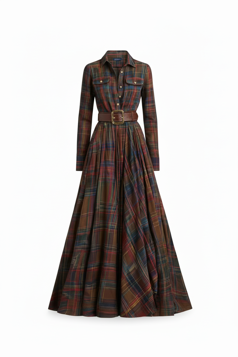 Emanuela on tyylilausunto, jota olet etsinyt – pitkä mekko ruudullisessa kuviossa, joka yhdistää klassisen eleganssin moderniin. Integroitu vyö korostaa siluettia täsmällisesti, luoden täydellisen muodon, joka toimii sekä muodollisissa että rennommissa tilanteissa.