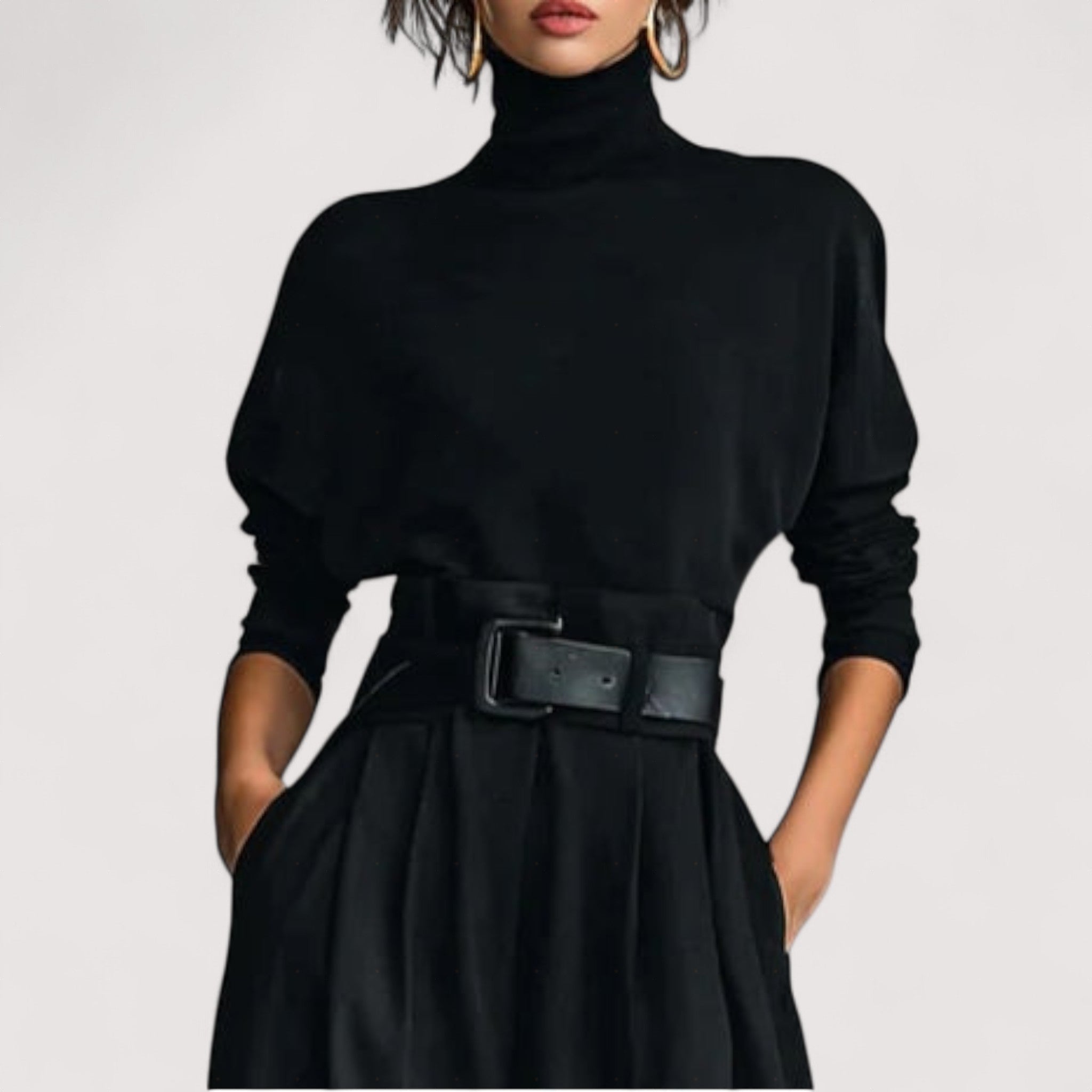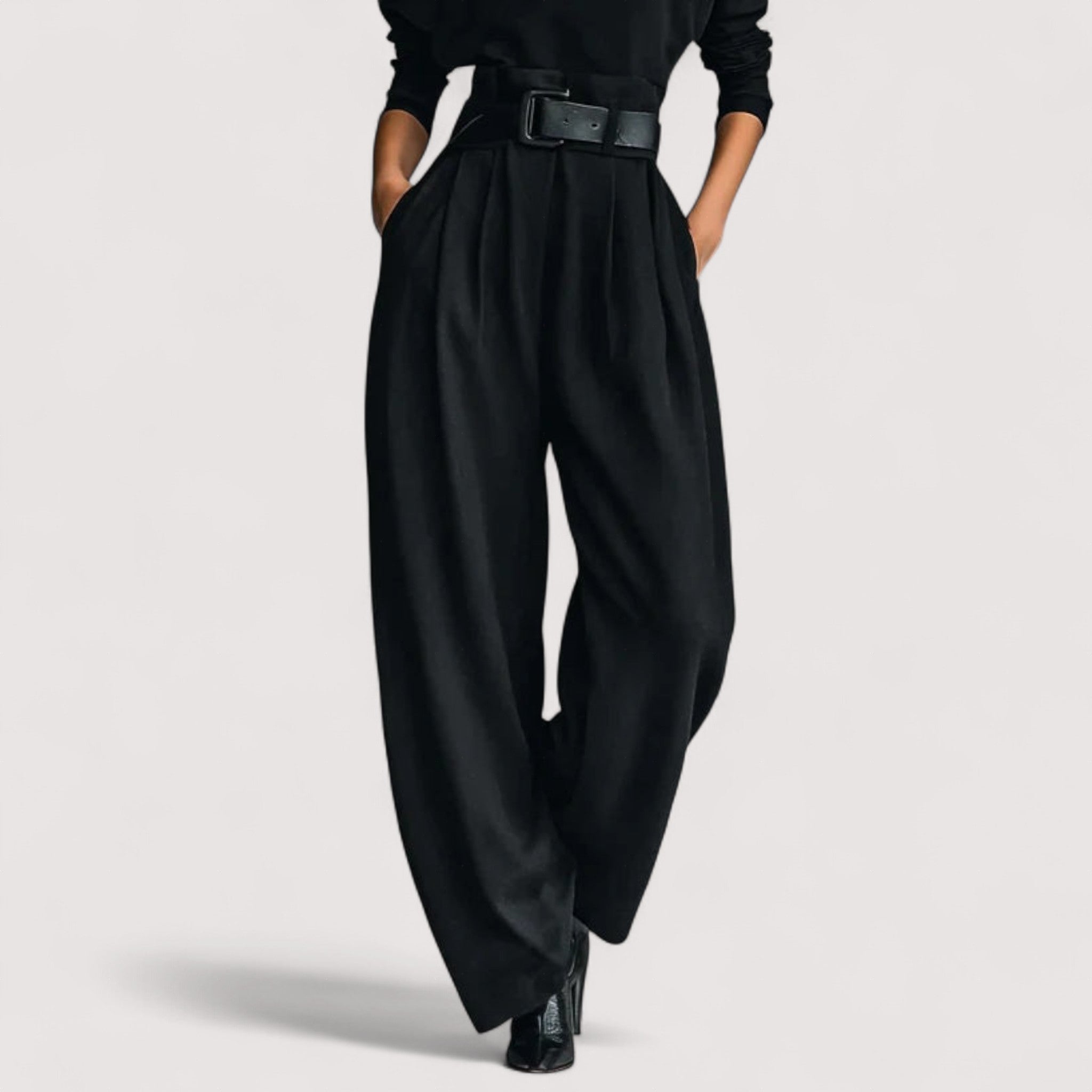 • Täydellinen siluetti: Rentoa yläosaa ja suoria housuja, joita korostaa vyö, luovat elegantin, edullisen muodon.