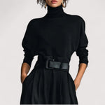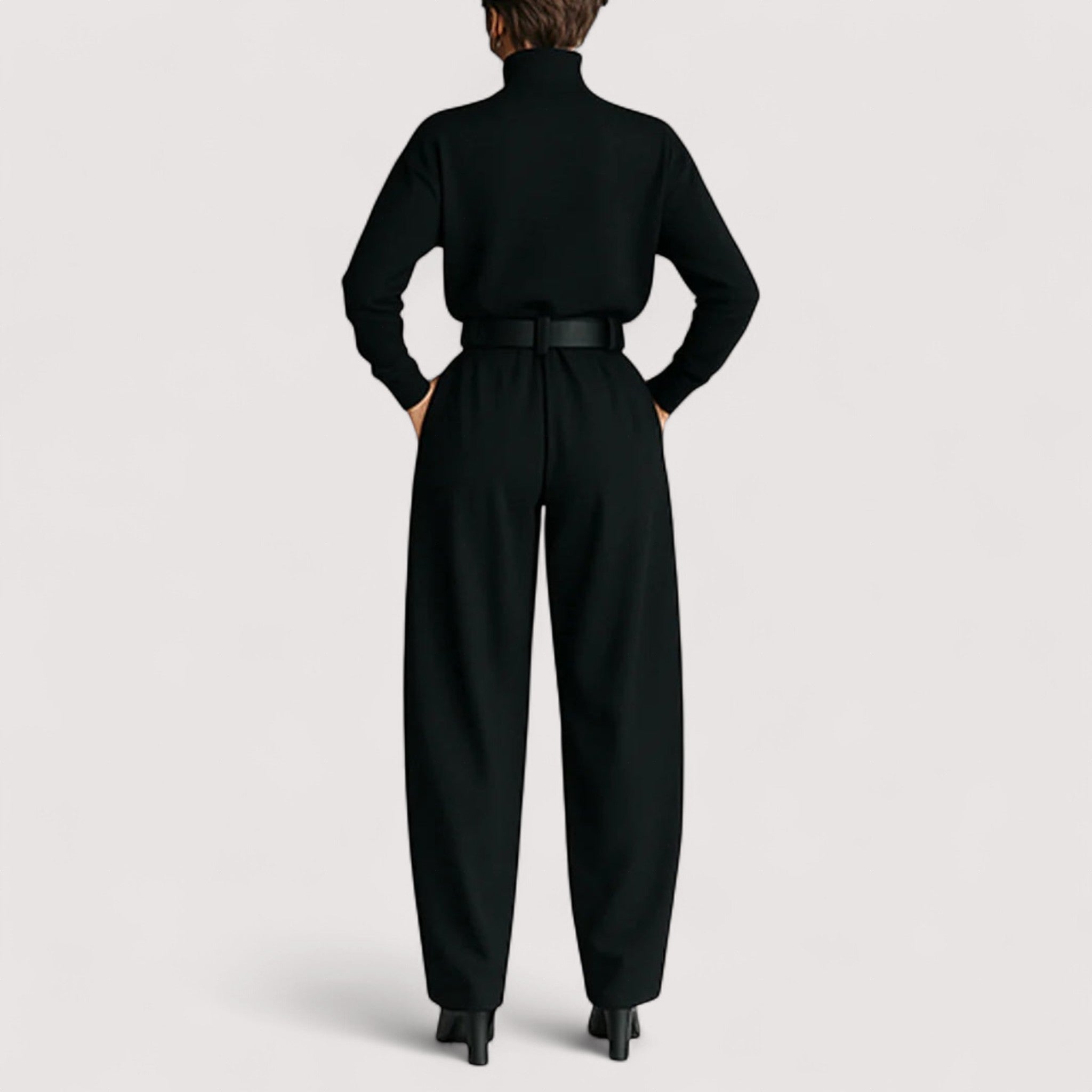 Orina™ | Musta poolopaita pitkällä hihalla ja suorat housut kaksiosainen setti
