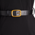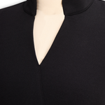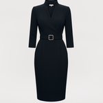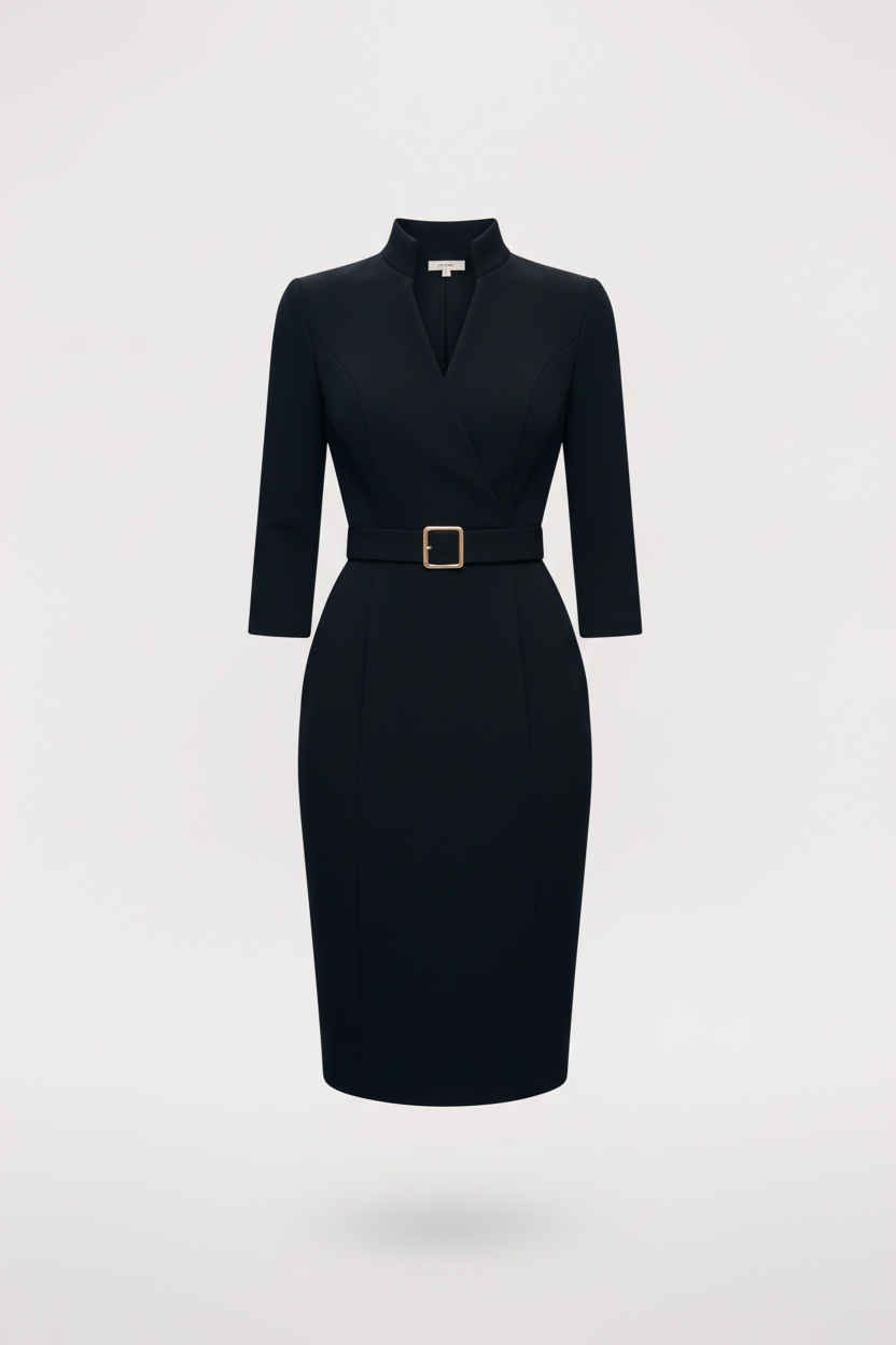 Nora | Viimeistelty Musta Mekko Vyöllä ja Mandarin-kauluksella