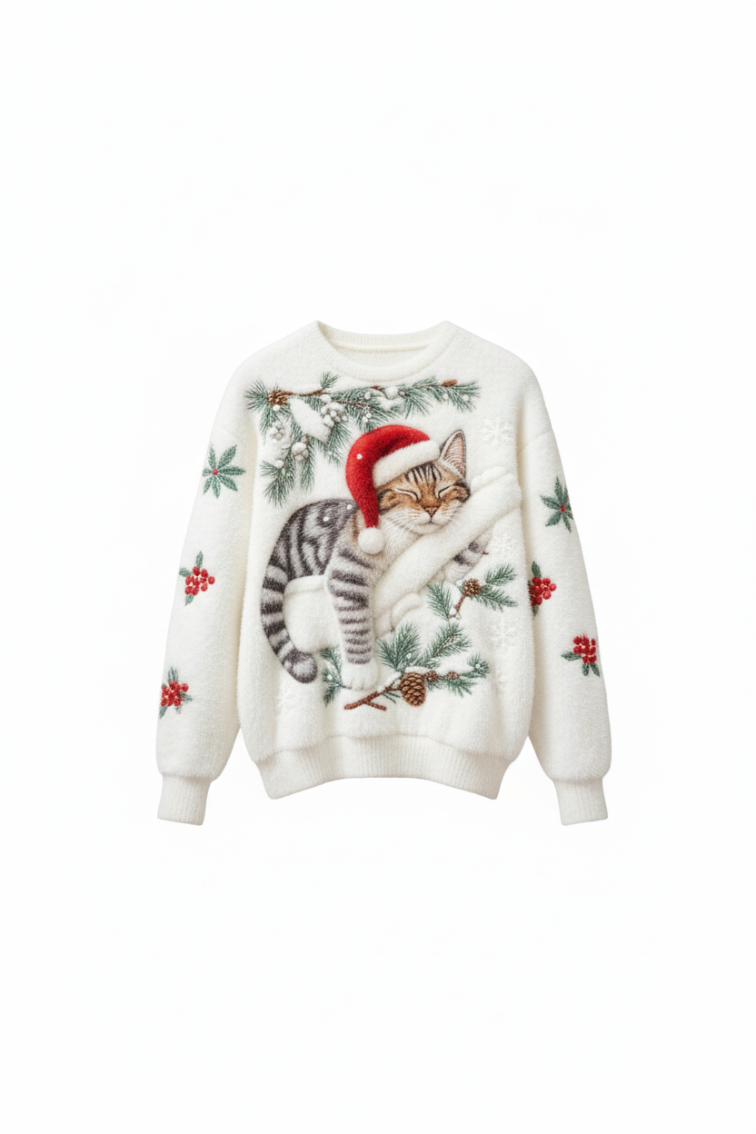 Tämä kodikas juhlava villapaita yhdistää lämpöä, viehätysvoiman ja ainutlaatuisen sesonkiluonteisen, lisäten leikkisyyttä kauniisti kuvatulla kissalla. Pehmeä, pörröinen rakenne tekee parhain rentoihin päiviin, ja se vaatii valintaa niinlle, mitkä arvostavat ainutlaatuista ja sydäntä lämmittävää juhlavaatetusta.